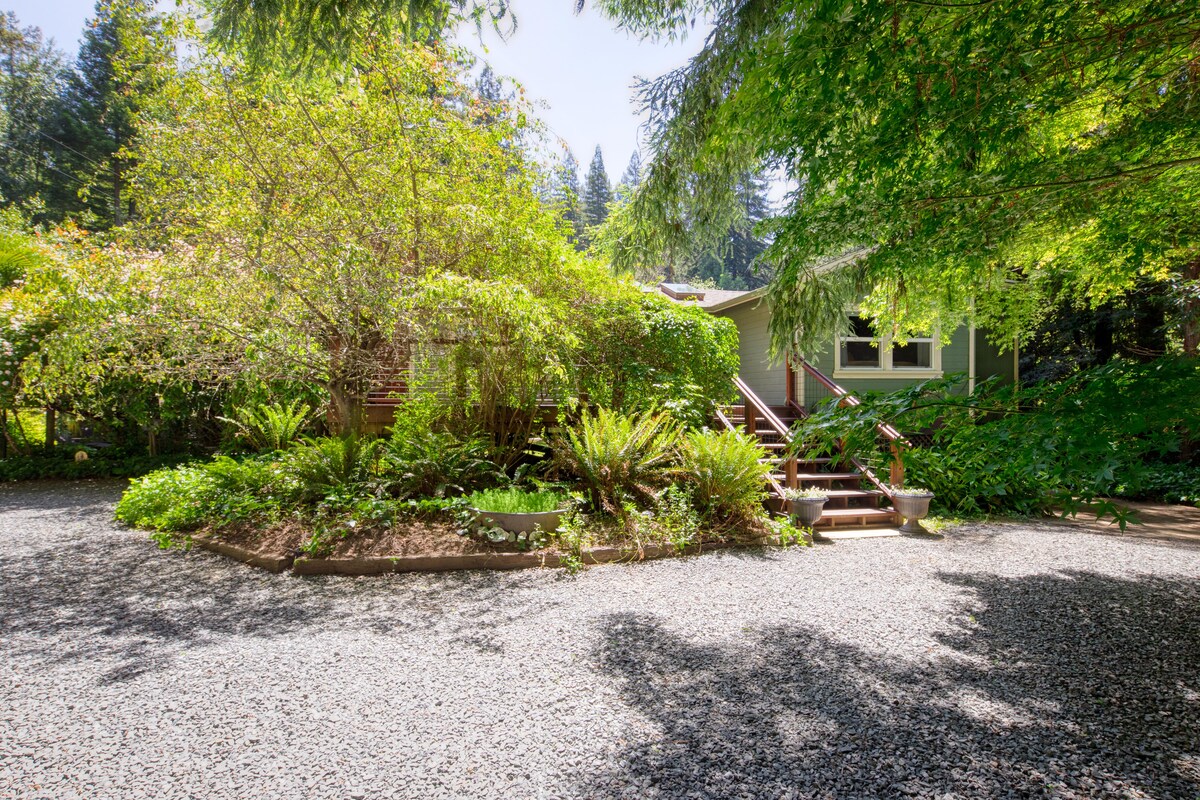 寧靜的西馬林度假勝地,我們親切地稱之為L 'il Zuma。坐落在聖赫羅尼莫谷中心的雄偉紅木林中。穿過步行橋,越過溫和的季節性小溪,找到一個迷人的房源,擁有定制的現代室內裝潢。開放式樓層平面圖,配有天窗、全套臥室和睡眠閣樓,可通往甲板,將戶外景觀帶入室內。在神奇的私人度假勝地放鬆身心。 距離費爾法克斯(Fairfax)幾分鐘路程,輕鬆前往西馬林(West Marin)最好的公園、自行車、徒步小徑和海灘。 生活真美好!