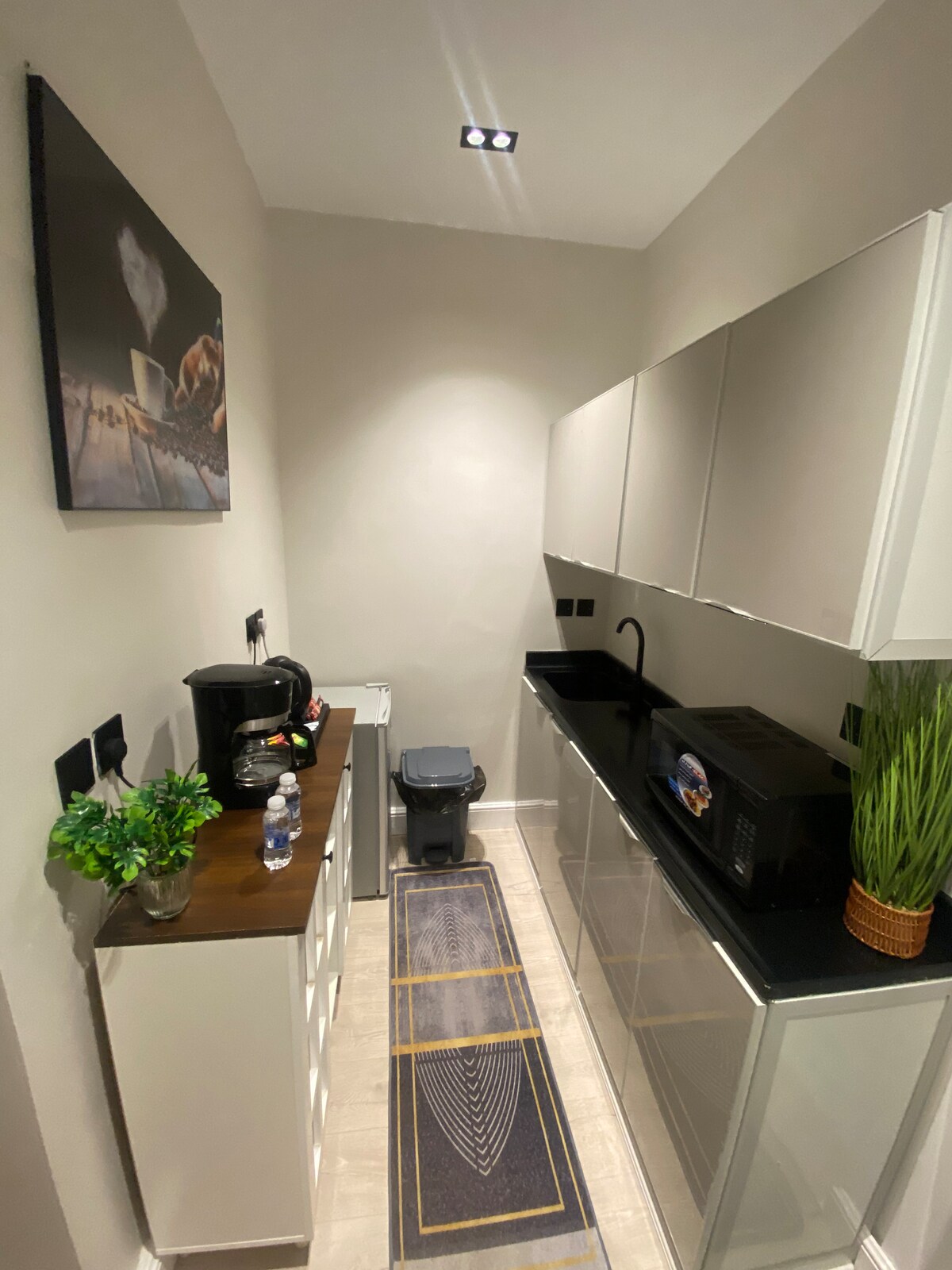 現代化的單間公寓,有獨立入口,位於靠近大道的 Hattin 街區,所有活動都在 Sad 廣場後面,設計現代化,色彩舒適安靜,家具高級,此外還有 65 吋智慧螢幕,可使用所有應用程式 (Netflix、Watch、OSN)有高速網路,還有專屬咖啡角,配有冰箱、電熱水壺和微波爐,浴室內還有洗髮水、護髮素、毛巾和拖鞋,單間公寓安靜、放鬆,為希望安靜和舒適的人提供私隱