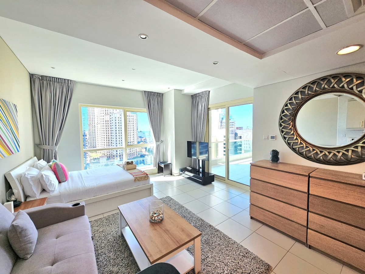 歡迎來到位於杜拜碼頭中心的全新公寓,有3張床(1張加大雙人床和1張非常舒適的沙發床)和1間浴室。 距離Jbr和交通工具僅幾步之遙,您將在距離大海僅幾步之遙的地方找到一個放鬆的避風港。在迪拜碼頭,您將找到最好的餐廳、商店、娛樂、購物中心和景點。我們的接待和細節將讓您驚嘆不已,我們將很高興接待您,讓您的住宿獨一無二!