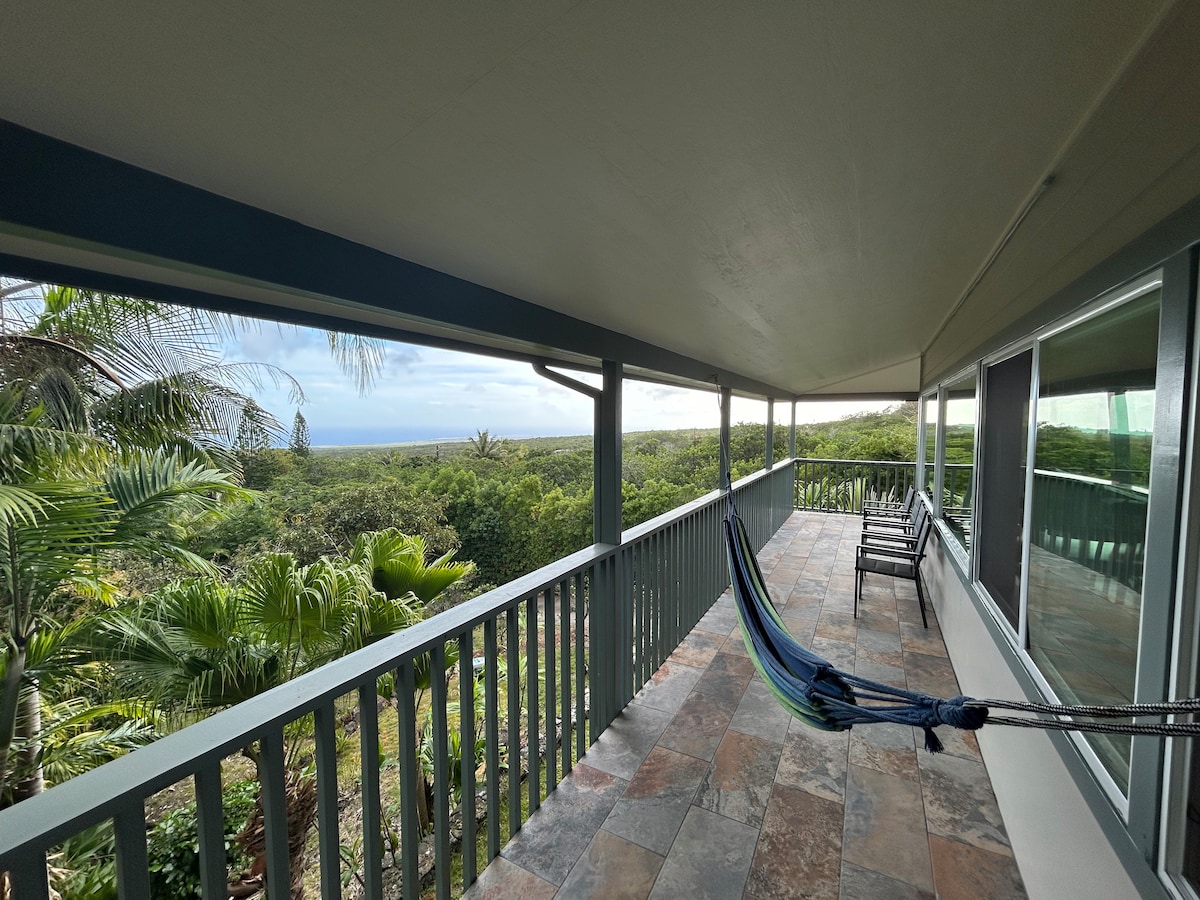 Island style Hawaiian home is expansive, bright, and open, 2 bedrooms and 2 bathrooms. With great ocean views. Located in a rural area on 1 acre of fenced in private land. Quiet and peaceful. 1 hour 15 min from Kona and same from Hilo. Best to get supplies in Kona or Hilo as no grocery stores in Na'alehu. Is 40 minutes to the Volcano Ntl. Park and 15 min to the Punaluu Black Sand Beach, 15 min to South Point and Green Sands Beach. There is no Wi-Fi ~ cell service works great in the area.