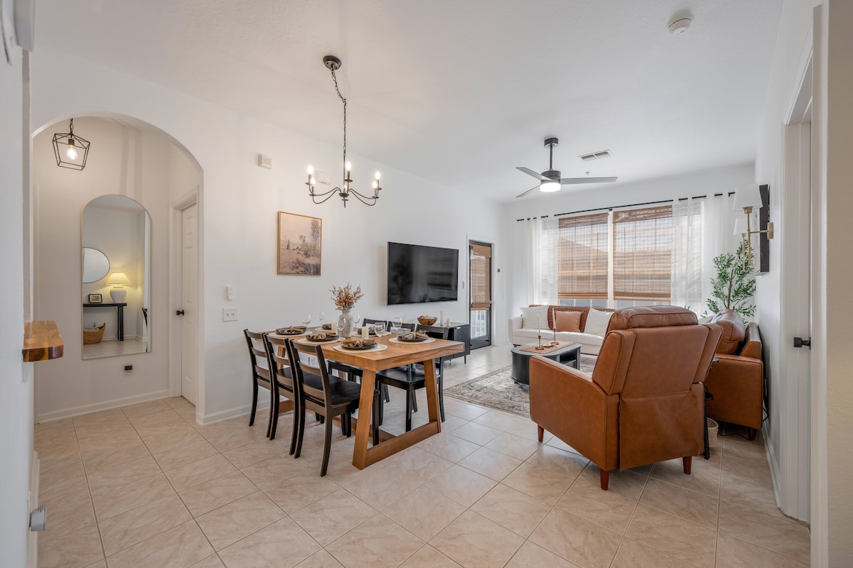 歡迎來到距離奧蘭多熱門景點僅幾分鐘的寧靜度假勝地。 這間旅居經過精心設計,採用豐富的紋理、大地色調和現代風格,營造出溫馨而高雅的氛圍。 享受度假村風格的福利:在泳池暢泳、在健身室鍛煉,或在佛羅里達州的陽光下放鬆。 步行即可抵達商店/餐廳/主題公園。 專業清潔,設備齊全,只需帶上行李箱即可。 立即預訂,體驗五星級的生活方式。