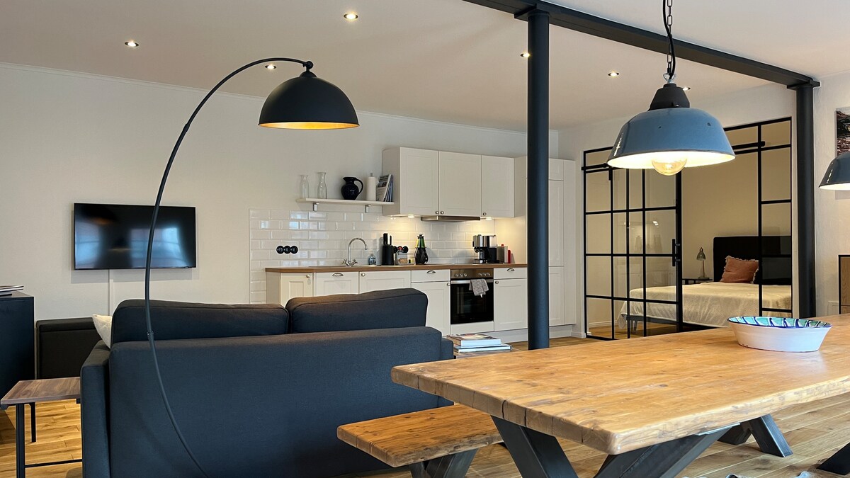 您將住在巴特布拉姆斯泰特 (Bad Bramstedt) 最古老的房屋之一。位於市中心 - 裝潢舒適、有品味。步行即可抵達商店和餐廳。該公寓於 2021 年 10 月全面翻新。門口有兩個私人停車位,可免費使用。公寓有 3 間臥室、1 間帶廚房的客廳和 1 間浴室。 可供 5 人入住(1 張雙人床、1 張單人床),青少年可使用閣樓的雙人床