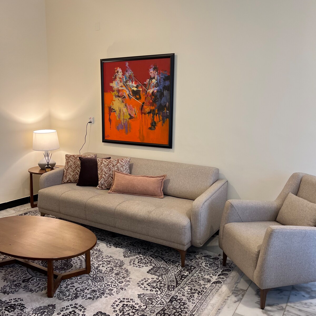 City center charm! Queen bed oasis w/ single option, heart of Mansour. Walk to shopping malls, cafes & more. AC chills, compact kitchen fuels. Modern nest near public transport. Unwind on comfy sofas, wash & stay. Your downtown Baghdad