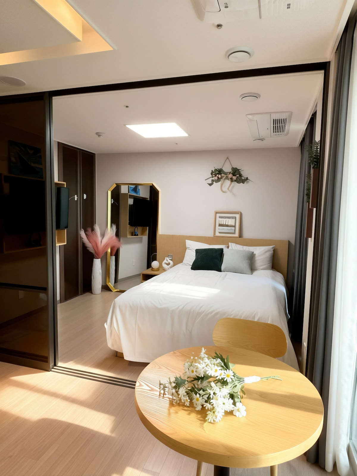 我們的客房是東海市第一個新建的住宅式生活住宿設施ᆢ 為了房客的安全和防火,建築物和室內都安裝了瓦斯偵測和自動滅火裝置,並且還購買了火災保險以防萬一。步行5分鐘即可抵達政府辦公室、醫院、易买得、大型食品超市、樂天電影院和美食街,您可以享受市中心的便利。