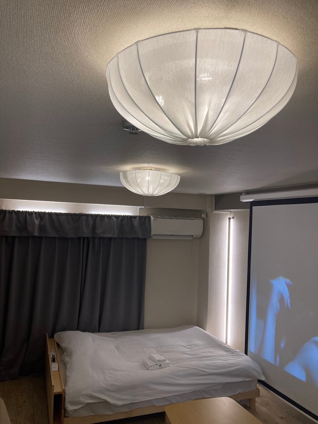 Our inn is within walking distance of Namba, Shinsaibashi, and Dotonbori—perfect for dining and shopping. The space offers a calming blend of Japanese tradition and modern comfort, featuring touches like tatami mats and soft lighting. Relax with watching movies from bed using the mobile projector. Perfect for rainy days! Enjoy movies on the big screen. We provide organic, pleasantly scented amenities and a local gourmet guide. For work, a desk and high-speed WiFi are also available.