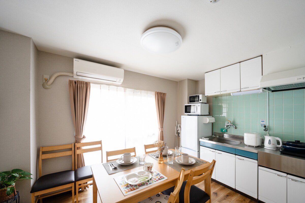 這是一間2LDK,面積51.3平方米的設計師房間。距大阪地鐵長堀橋站步行7分鐘,乘電車至心齋橋站僅需1分鐘。從長堀橋站出發,梅田站僅需10分鐘,關西國際機場50分鐘即可到達。 ◆ 特點 2LDK,最多可容納6人入住 位於大阪南部中心地帶 步行5分鐘內有超市和便利店 周圍有眾多餐飲店和購物中心 完備的烹飪工具 獨立出租 自助入住系統,無壓力體驗 完善的便利設施(洗髮水、護髮素、沐浴露、浴巾、拖鞋、牙刷、棉簽、剃須刀等) 支持日語、英語和中文 高速Wi-Fi完備