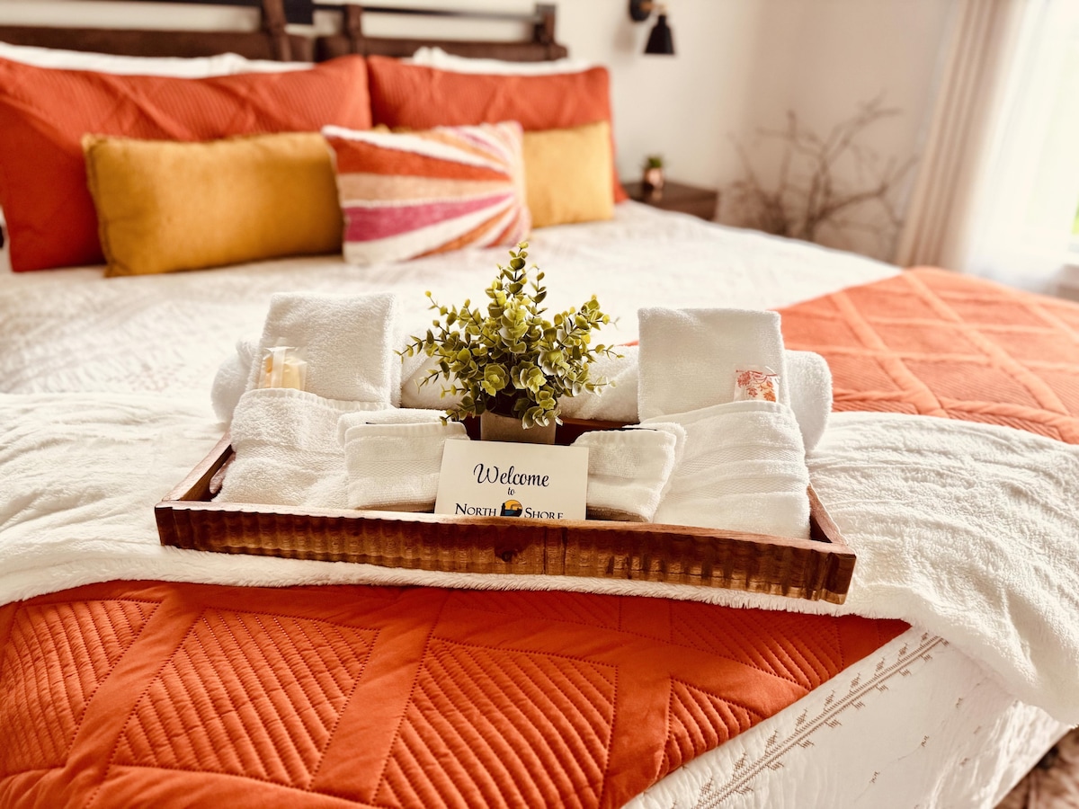Aurora Black by The Brix: A cozy 2-bedroom, 2-bathroom retreat in historic Canal Park with stunning views of the William A. Irvin ship. Perfect for families and adults alike, it features bunk beds for kids, modern amenities, games, an indoor pool, hot tub, on-site cocktail bar. Steps from the Aerial Lift Bridge, restaurants, and shops. The Brix Passport unlocks exclusive discounts at 25+ local businesses—eateries, breweries, stores—via a user-friendly digital pass.