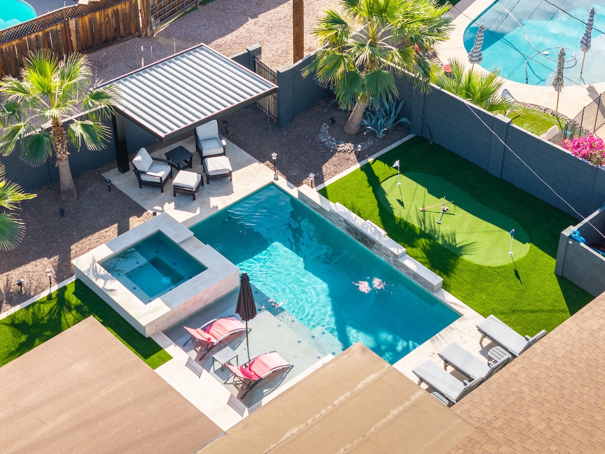 便利與奢華相得益彰,距離天港國際機場( Sky Harbor International Airport )僅15分鐘路程,距離斯科茨代爾娛樂區( Scottsdale's Entertainment District )不到 開放式平面圖有4間臥室、3間浴室和2,100平方英尺,散發出寬敞的氣息。 每間臥室均配有智慧電視、優雅的寢具和毛絨牀墊。 從客廳的乒乓球到家庭房的85英寸LED電視,娛樂選擇比比皆是。 在室外,享受全封閉後院的6座熱水浴缸、泳池、火坑和休息區。