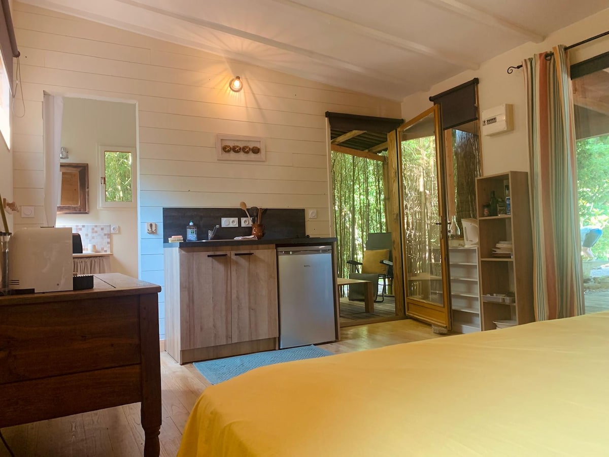 La Parenthèse Dieulefit 豪華小屋位於村莊中心附近,為您提供獨特的綠意與休憩環境。這座高腳小屋坐落在森林中,是一個真正的寧靜與放鬆的天堂。24 平方公尺的私人露台,配有 SPA、日光浴室等,讓您享受戶外空間/180 公分特大床、空調、電視、獨立浴室和廁所、Nespresso 咖啡機(每人每天 2 顆膠囊)、水壺(含茶和花草茶)。包括浴袍和浴巾。包括早餐。