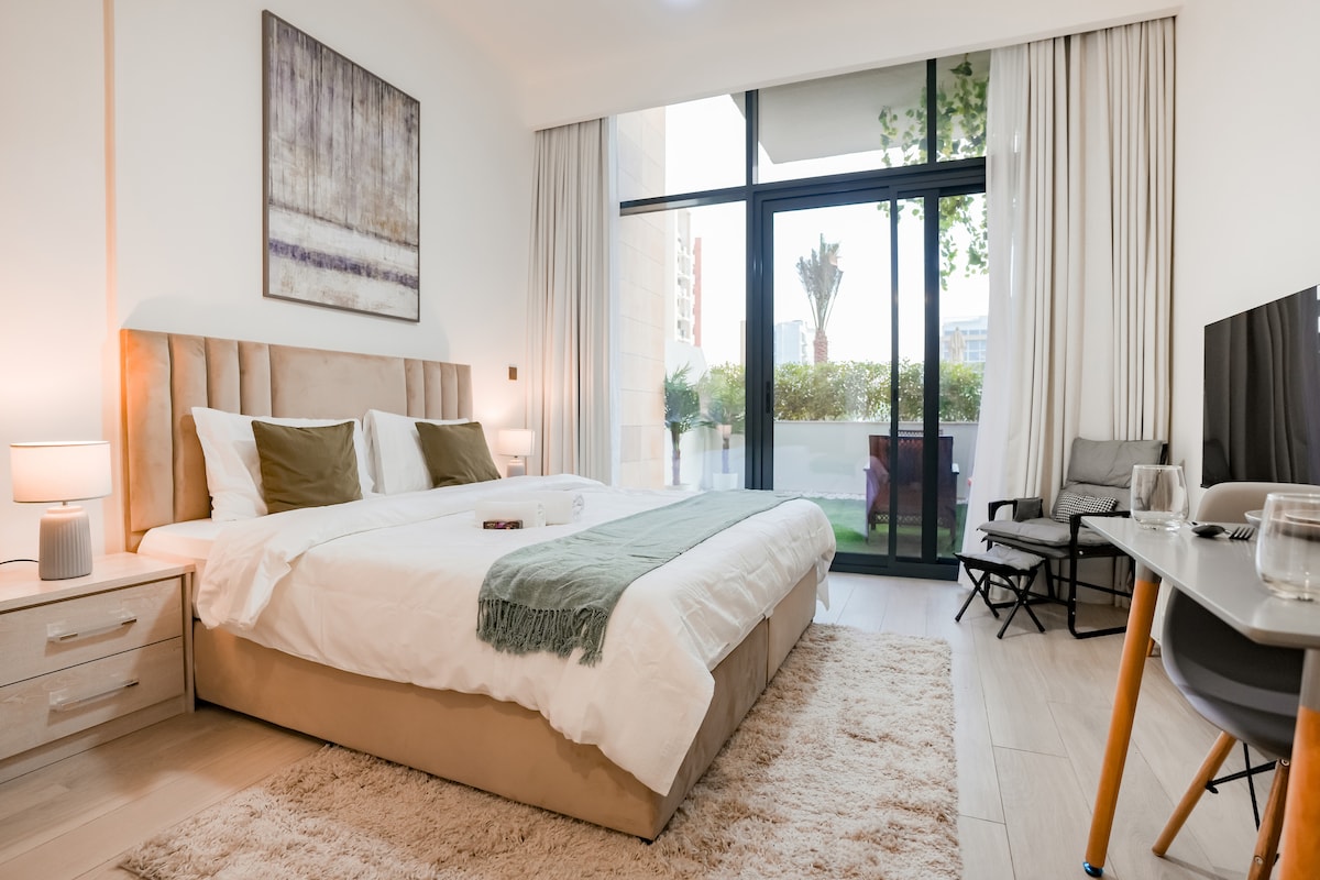 入住我們寬敞的45平方米單間公寓,體驗舒適和奢侈的完美融合。 此空間設有豪華加大雙人牀、設備齊全的廚房和私人陽臺,可欣賞令人驚嘆的杜拜天際線景觀,專為放鬆而設計。 在溫馨的家庭環境中享受現代化的設備與服務和飯店般的服務,讓您擁有真正難忘的住宿體驗!