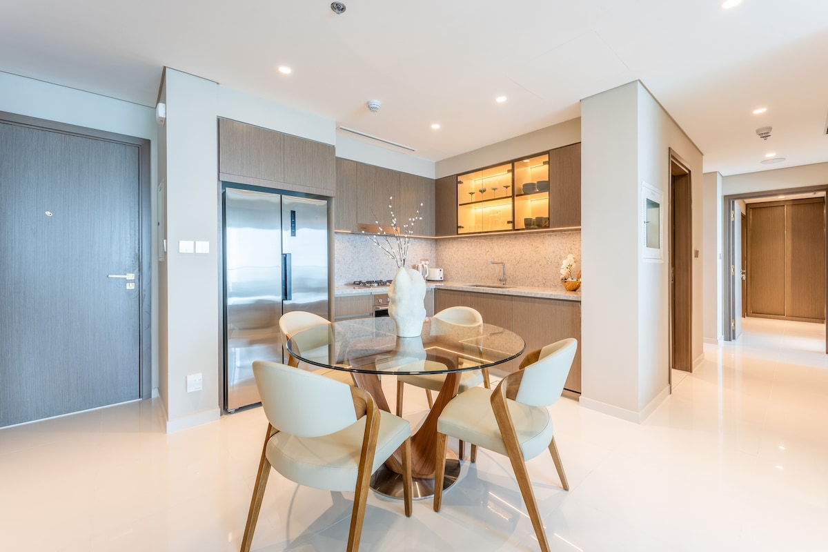 入住杜拜市中心! 我們的豪華2房公寓提供「前排座位」,讓您可以直接欣賞大多數獨特地標的全景。 在客廳、睡房或開放式陽台觀看和聆聽跳舞噴泉或哈利法塔的激光表演。 步行幾分鐘即可抵達所有地標和迪拜歌劇院及其公園。 公寓配有2間臥室、廚房和沙發休息室。 房源設有健身房、室外遊泳池和兒童遊樂場。