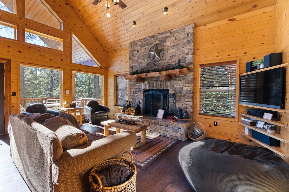 歡迎!我們的私人小木屋度假勝地結合了山脈的寧靜與現代舒適,提供完美的放鬆度假。距離布萊恩峰滑雪度假村(Brian Head Ski Resort)、湖泊釣魚和附近的國家公園(如布萊斯峽谷(Bryce Canyon)(40英里)錫安國家公園(Zion National Park)(60英里))僅15英里。在露台上放鬆身心,欣賞令人驚嘆的景色,舒適地靠近壁爐,或在熱水浴缸中放鬆身心。在75吋智慧電視上「Netflix n chill」。我們提供您需要的一切,讓您的山間度假難忘。