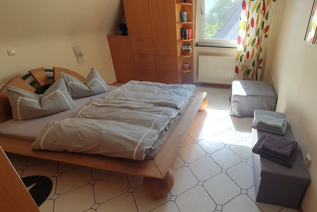 舒適的無菸公寓,有獨立入口和鑰匙保險箱。公寓位於一個安靜的死胡同中的兩戶家庭住宅中。它有浴室、廚房、臥室、客廳和用餐區。Wi-Fi 包含在內,步行即可抵達商店。電車和巴士站(連接到杜塞爾多夫展覽中心/杜塞爾多夫中央火車站/埃森展覽中心)步行即可抵達。 餐廳距離 10 分鐘路程。我們很樂意提供有關文化和休閒的更多信息。