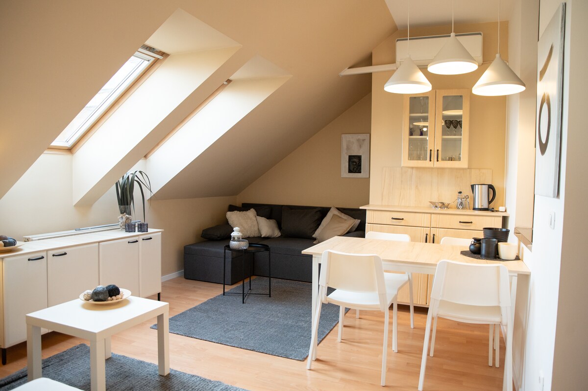 歡迎來到布達佩斯市中心這間迷人舒適的頂層公寓,從Deák廣場步行幾分鐘即可抵達Gozsdu Court ! 這間位於市中心的頂層公寓位於最令人興奮的地區之一,不僅有很多餐廳、酒吧和咖啡館,而且主要景點,季節性街頭市場也在步行距離內! 公寓設備齊全,配備您度假所需的一切設備。