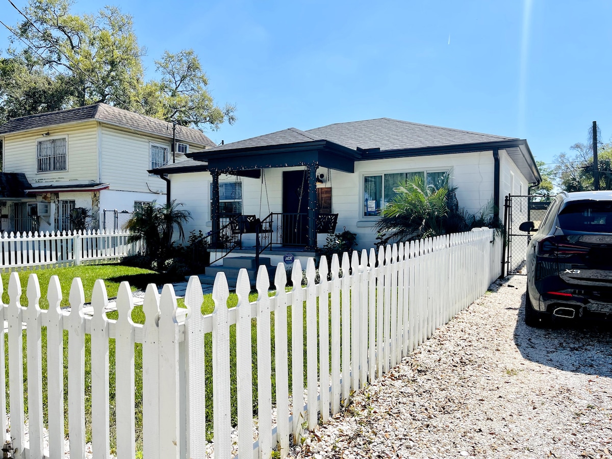 這間獨特的平房風格獨到。Two Swings是您的家外之家,同時靠近坦帕市中心的一切。步行10分鐘即可抵達坦帕大學,步行10分鐘即可抵達Armature Works ,開車5分鐘即可抵達坦帕市中心- Amalie Arena、Water Street District、Tampa General Hospital等。