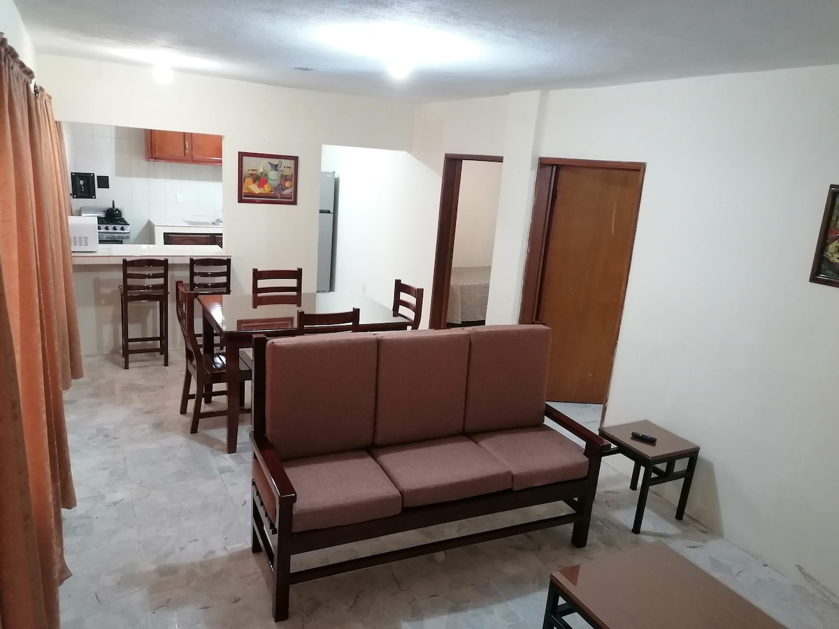 Cozy one-bedroom apartment for two people. It features two TVs, Netflix, Wi-Fi, free parking, 24/7 hot water, kitchenware, a refrigerator, a gas stove, a microwave, and potable water. Located within a private, gated community with 24-hour security. Situated on the third floor in one of the city's best-located and most connected areas, it's close to supermarkets, restaurants, and shopping centers. It has everything you need for a comfortable stay.