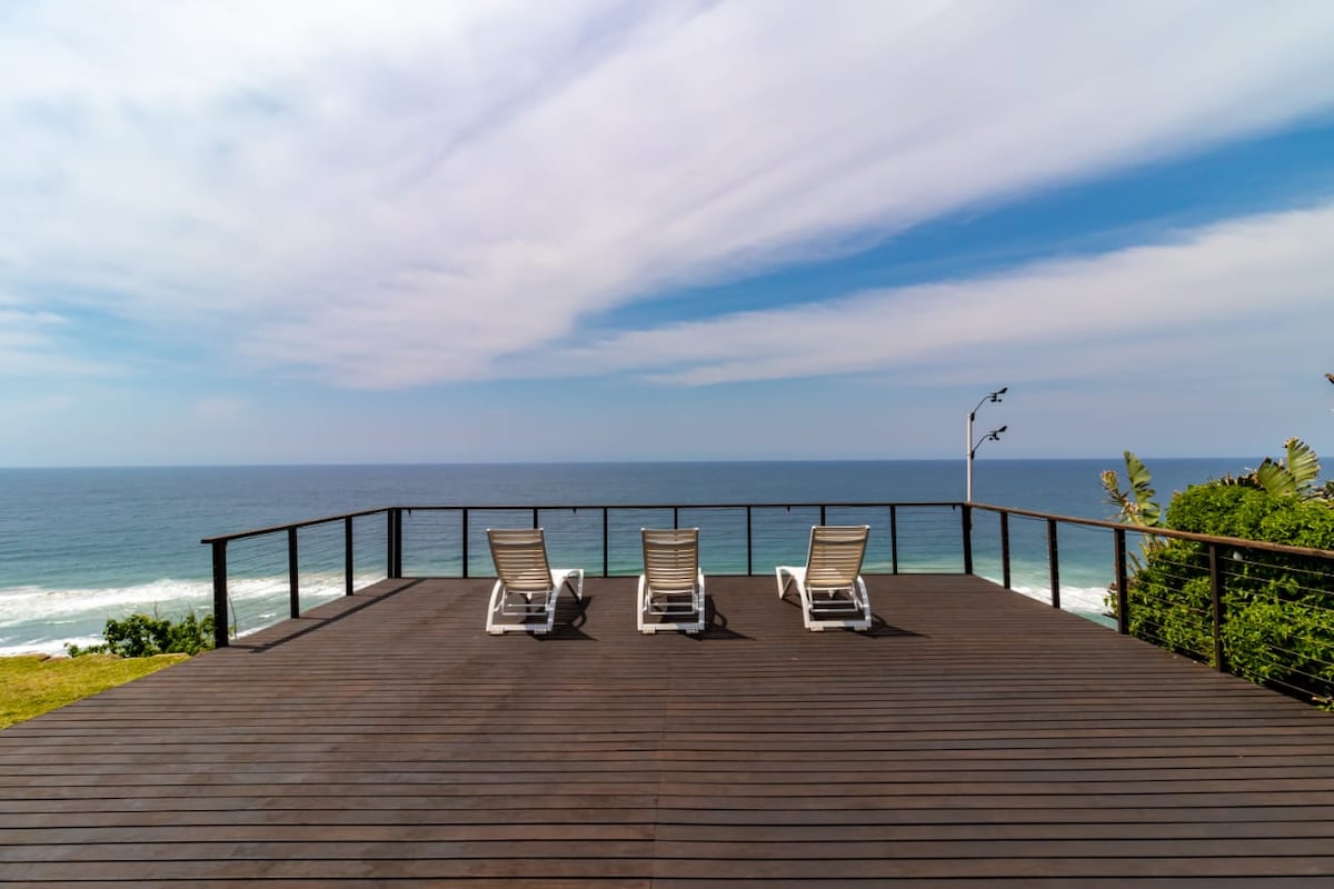 Your own bit of tranquil paradise. Relax on the large deck overlooking the Indian Ocean right in front of you where whales & dolphins play. This air-conditioned 1 bedroom cottage boasts private ocean views throughout and a short 80m pathway to the beach. A lounge with a 50” flat screen and full DSTV, a fully equipped kitchen with a fridge/freezer. Free use of Fibre High speed Wi-Fi. Inverter electricity backup Drive-in access with safe private parking. in a good area along Marine Drive.
