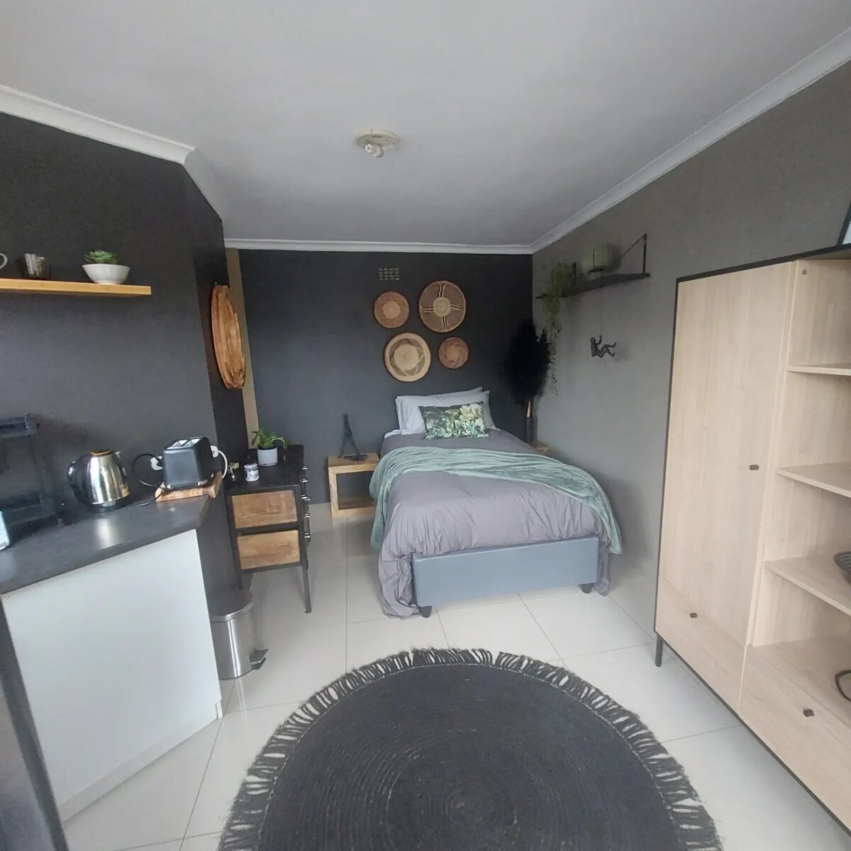 現代化的20平方公尺房間,配有層壓地板。 設備齊全的小廚房,包括微波爐、水壺、烤麵包機和吧台冰箱。 提供餐具、陶瓷餐具、茶、咖啡和牛奶。 附 DSTV 的電視。 光纖 WiFi。 套房浴室,配備淋浴間(提供毛巾和肥皂) 小露臺/花園。 安全的路邊停車位。 很抱歉,禁止攜帶寵物。 距離德班維爾中心(Durbanville centre)2分鐘路程,有商店、餐廳等 距離德班維爾葡萄酒路線5分鐘路程 毗鄰德班維爾高爾夫球場 距離開普敦/斯泰倫博斯25分鐘