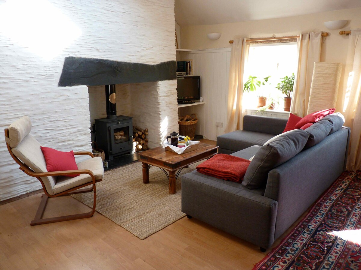 A lovely old renovated cottage with inglenook fireplace, wood burning stove and mezzanine. It is well equipped for your stay as I have tried to make it a home from home for you with many books and houseplants. There will always be some welcome goodies and you can sleep in snuggly beds made up with 100% cotton or organic cotton sheets and feather and down duvets. The cottage is situated in the pretty wooded Dulas valley near the historic town of Machynlleth, close to Snowdonia and the sea.