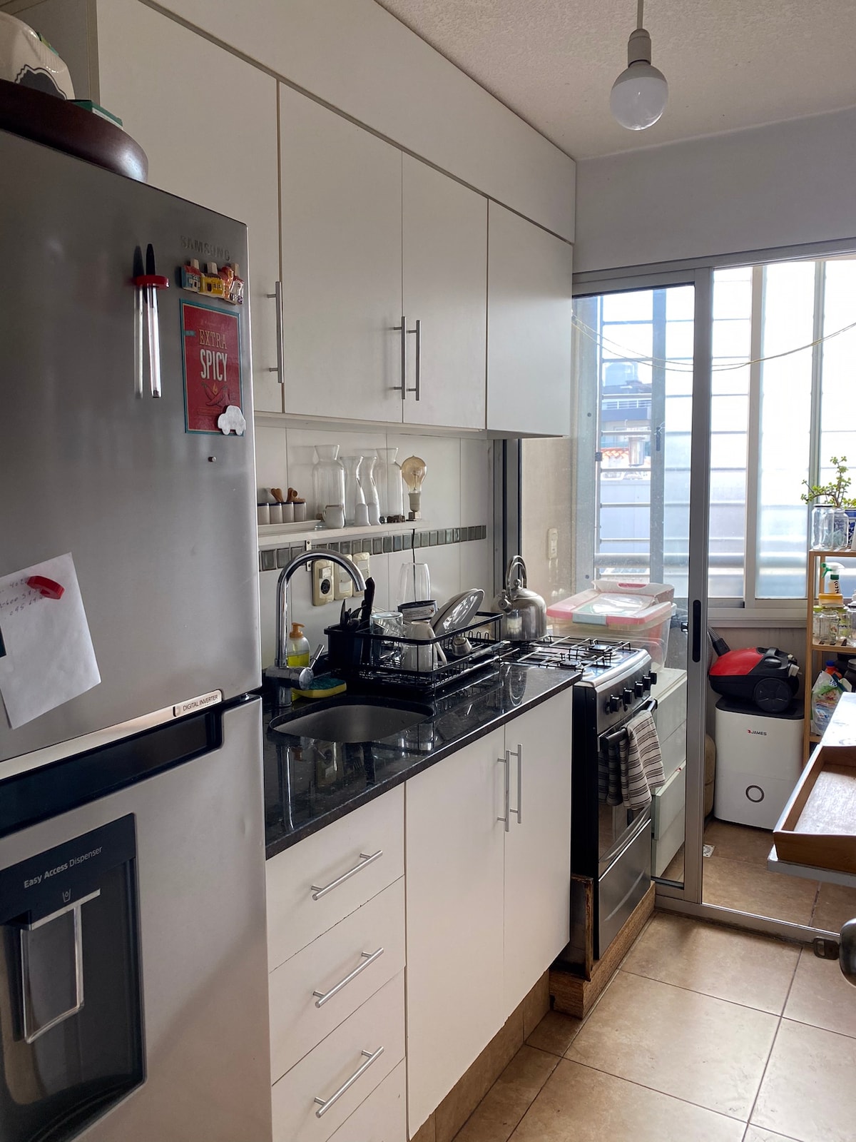 我們的放鬆上層房源距離蘭布拉街和海灘僅四個街區,可接待家庭或好友。 光線充足的廚房,配有可容納八人的用餐區域,方便團隊合作!房子很安全,有警報器和百葉窗,可以遮蔽臥室,讓您可以晚睡。 我們的當地雜貨店、藥店、咖啡廳、髮廊和餐廳僅兩個街區。Portones Mall和Arocena的購物/用餐都很漂亮,步行15-20分鐘即可抵達Carrasco的街區街道。