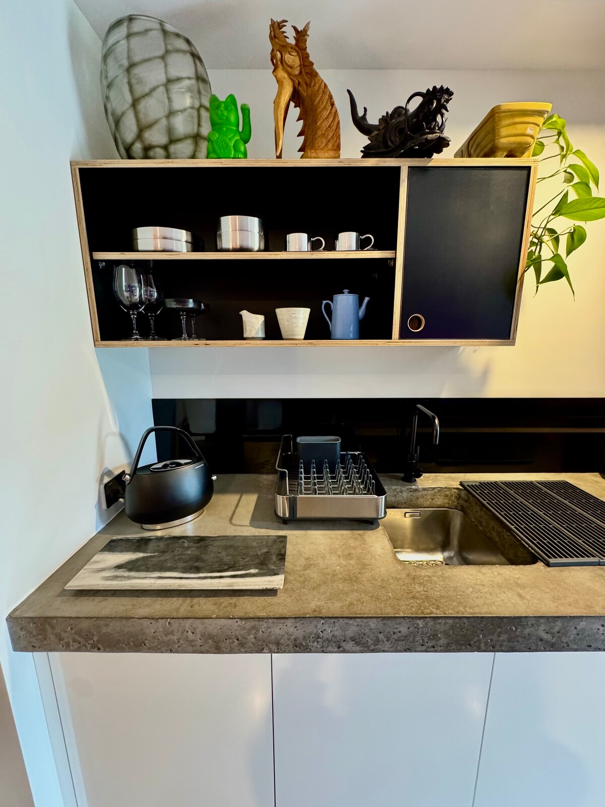 現代化的單間公寓,配有拋光混凝土地板。大型開放式廚房,明亮通風。咖啡機和有機茶。洗碗機和所有廚房設備。非常舒適的沙發,配有智慧電視、空調和壁爐。洗衣房、大浴室和獨立臥室,配有加大雙人床、優質寢具。私人庭院,配有烤肉、室外家具、晾衣繩。現場停車區。
