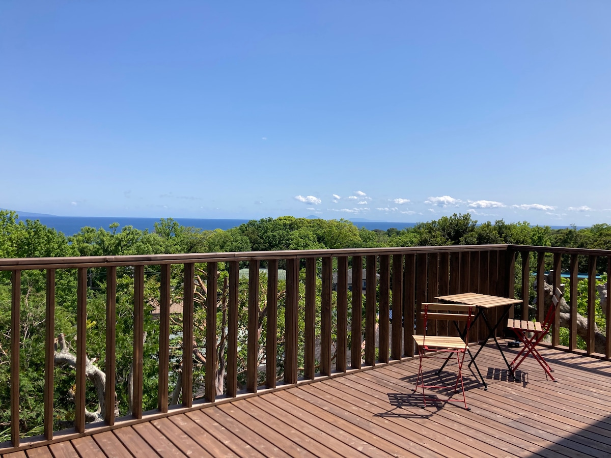 溫泉和景觀露臺! 白色和藍色出租屋,可俯瞰伊豆大島[Grand Blue Jogasaki]