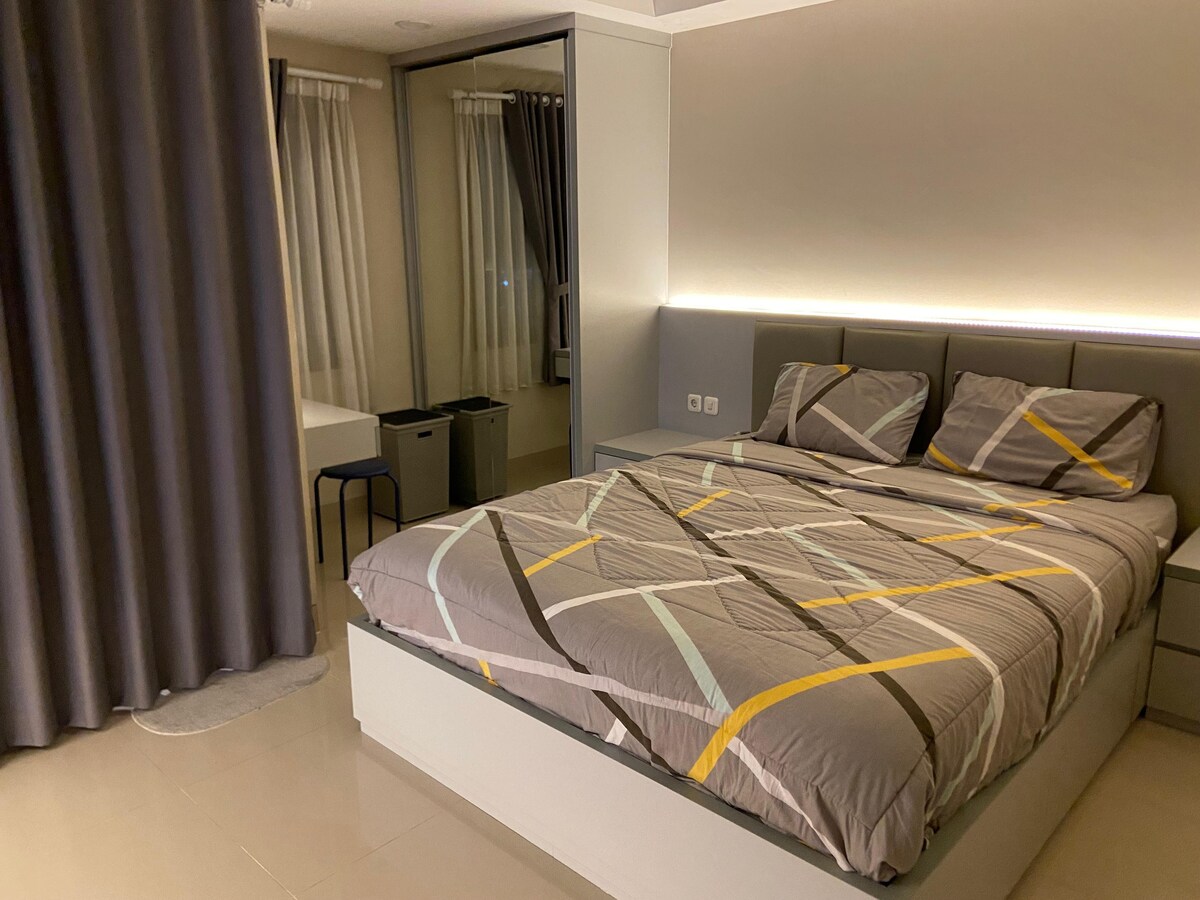 入住這間乾淨、安靜且位置優越的房源,讓自己的旅程輕鬆無負擔。 W Place是2023年新建的,位於安全的公寓大樓中。 我們會盡力為房客提供基本需求和電器。 作為回報,我們希望房客能好好照顧好我們的房源:) 適合: 商務=靠近哈林機場、Kuningan、SCBD 休閒=靠近Senopati、Kuningan、SCBD 遠距工作= 20 Mbps WiFi 住宿= Tebet生態公園、健身房和泳池