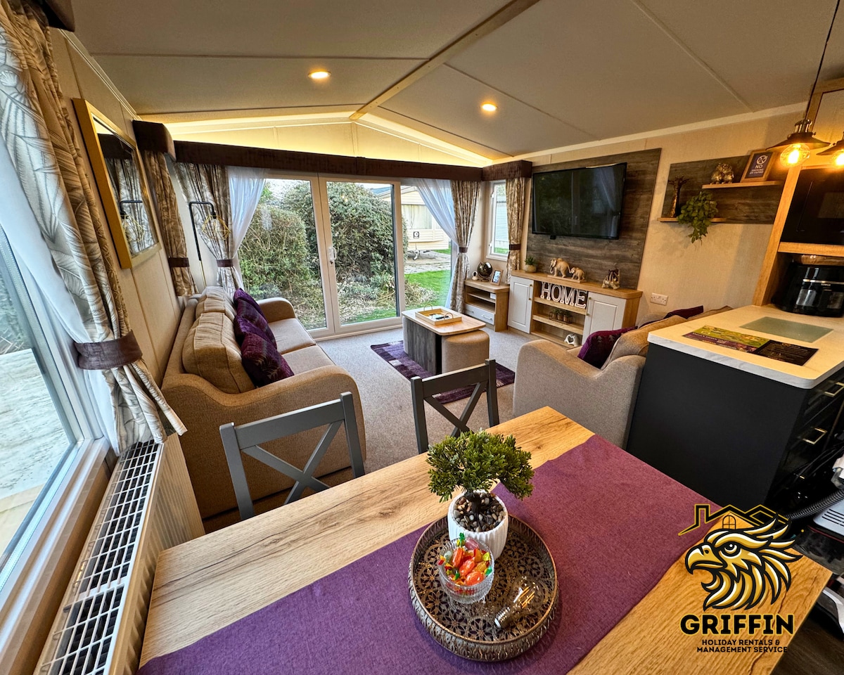 享受我們位於迷人的Skegness的小屋。 小屋提供無與倫比的房客設施,注重細節。 如果你喜歡這個很棒的戶外活動,但也渴望奢華的舒適,這間小屋是您的完美目的地。 作為自炊式小屋,您可以找到完美住宿所需的一切。 廚房有冰箱、爐臺、烤箱、水壺、冷凍庫和微波爐。 小屋是放鬆身心的完美場所,提供電視和網路連線。 這間小屋有2間臥室,客廳有額外的沙發牀,可供6人舒適入住。 在第一間臥室,您可以找到一張雙人牀。 第二間臥室設有2張單人牀。 有2間浴室。 第一間浴室是套房,配有馬桶、洗手臺和步入式淋浴間。 第二間浴室配有馬桶和洗手臺,配有淋浴系統。 提供牀單和毛巾,讓您的住宿更加愉快。 《房屋守則》: -入住時間為下午3點,退房時間為上午11點。 -不可抽菸。 -房源內有免費停車設施。 -允許寵物入住2隻狗。 公園通行證是使用現場設施的額外通行證( Off Peak 7.00 21.00 pp少於7天18.90人) ( Peak 7days 29.95 pp少於7天26.96人) !!我們不允許同性團體或派對團體入住! ! ! 如果發現您煞車這些規則,我們會將您從房源中移除。 公園設施的季節日期為3月至10月。 此後的預訂僅適用於旅館。