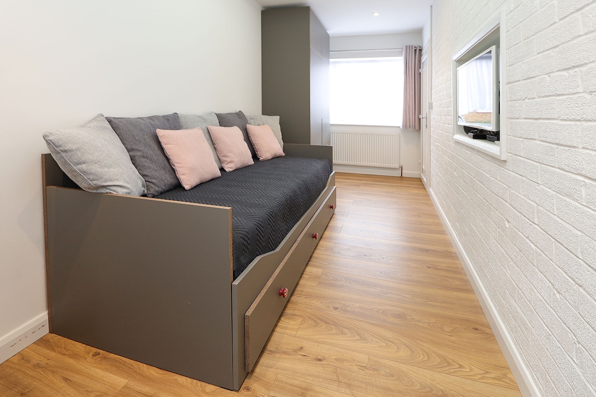 獨立附屬建築KT2 5LR,距離倫敦市中心約1小時) -免費街頭停車位(視供應情況而定),全面保安。臥室、休息室/廚房、工作站區域和現代化的浴室。提供免費茶、咖啡、洗髮精、潤髮乳、沐浴乳。SKY TV、WIFI。靠近Richmond Park,距離Norbition站1公尺,在371巴士路線上。距離Kingston Town中心1.1公尺。附件非常適合參觀該地區、探親、參加活動、婚禮、重聚、商務會議等的人士。