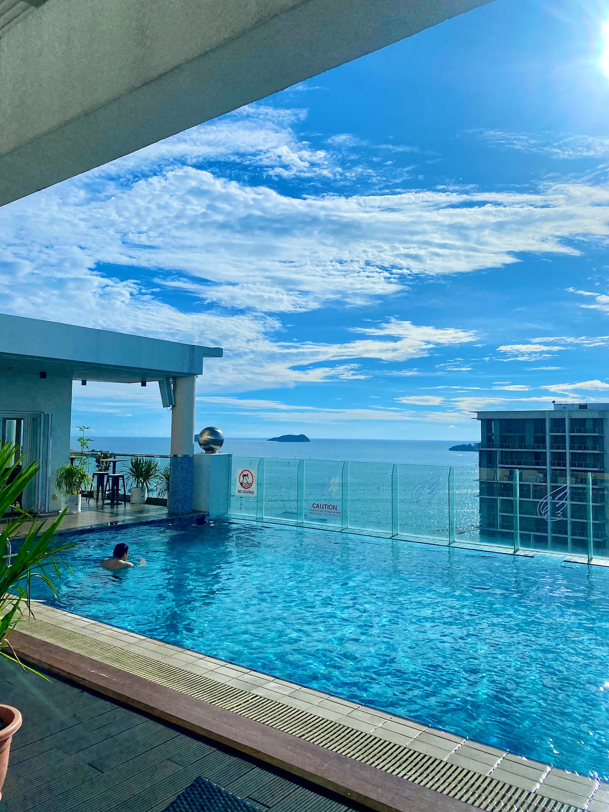 位于亚庇市中心The Shore公寓,高层海景阳台视野开阔,天气晴朗时可欣赏美丽的日落景色,非常适合情侣或朋友入住。 步行即可到达加雅街、哲斯顿码头(出海跳岛)、Suria Sabah商场、菲律宾市场与夜市,地理位置非常方便。 房间干净舒适,设施齐全,提供高速WiFi、空调、热水淋浴及基本生活用品,让您的旅程更加轻松自在。 这里也是拍照打卡的热门选择,阳台景色迷人。 房东回复及时,入住体验安心放心。 由于房源位置优越且评价高,旺季及周末较容易满房,建议提前预订以确保您理想的入住日期。
