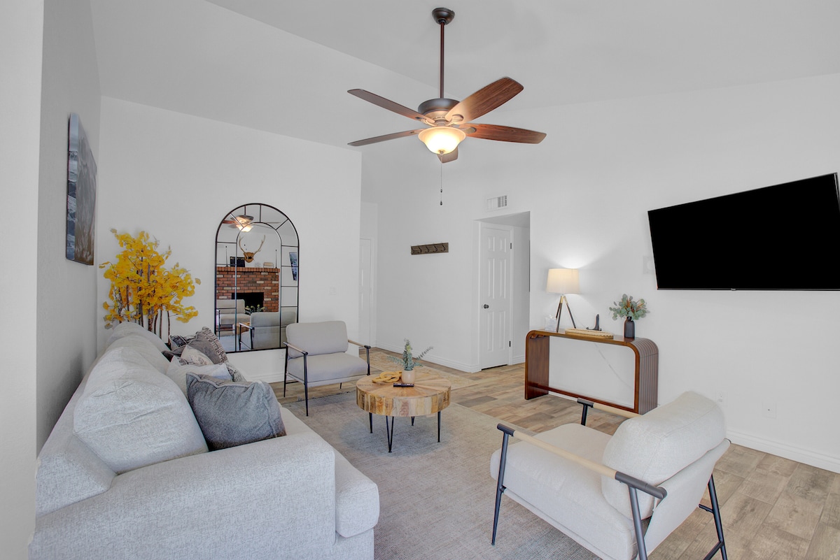 Minutes from ARIZONA ATHLETIC GROUNDS and MESA GATEWAY AIRPORT! Nestled in Mesa's picturesque heart, our guest suite is ideal for travelers attending events at the nearby Arizona Athletic Grounds Stadium. Located minutes from the 202, enjoy seamless access to the greater Phoenix area. Experience full privacy with a private entry and modern furnishings, including a 55" SMART TV. Perfect for relaxation and convenience. Book your stay today!