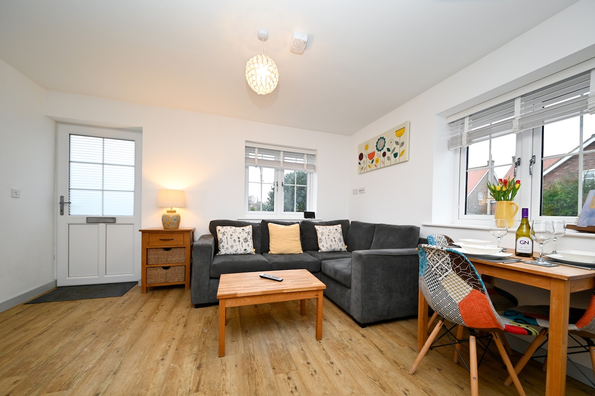 建於2018年,現代化的獨立平房,有開放式客廳和廚房區域、淋浴間、雙人臥室、單人臥室和外院。 非常適合情侶、朋友和小家庭。 位於格林斯頓村(Grimston)中心,距離當地商店和2家當地酒吧很近。靠近皇家桑德靈厄姆莊園(Royal Sandringham Estate),距離壯麗的北諾福克海岸線(North Norfolk Coastline)僅15分鐘車程。