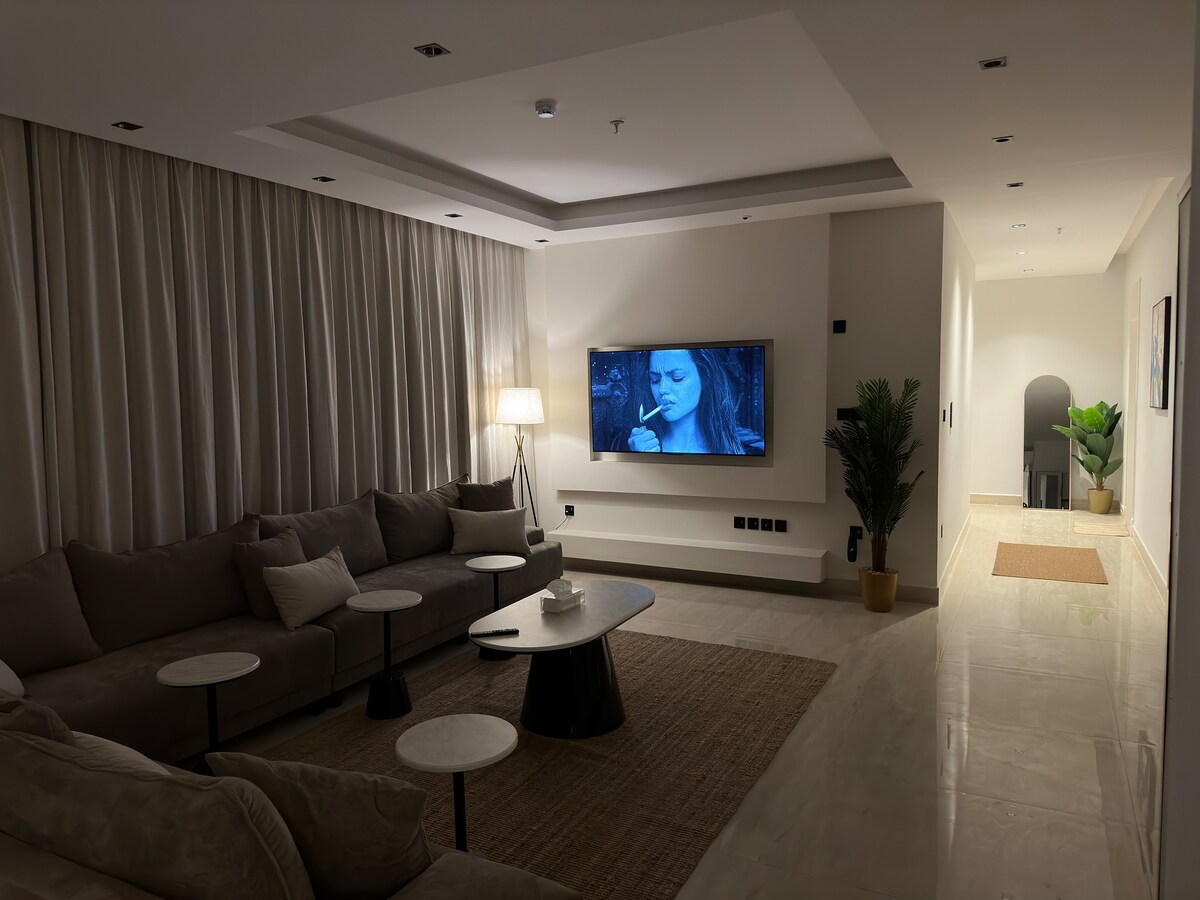 Elegant Apartment – Al-Khazama, Al-Khobar ✨ 🛏 3 bedrooms with hotel-quality linens 🛋 Spacious living room + Smart TV (Shahid VIP & Netflix) 🍳 Fully equipped kitchen ❄️ Central & split A/C 🌐 High-speed WiFi 🔑 Smart entry | 🚗 Parking 📍 Prime location near Bahrain Causeway, Corniche & malls ✨ Perfect for families & comfort seekers