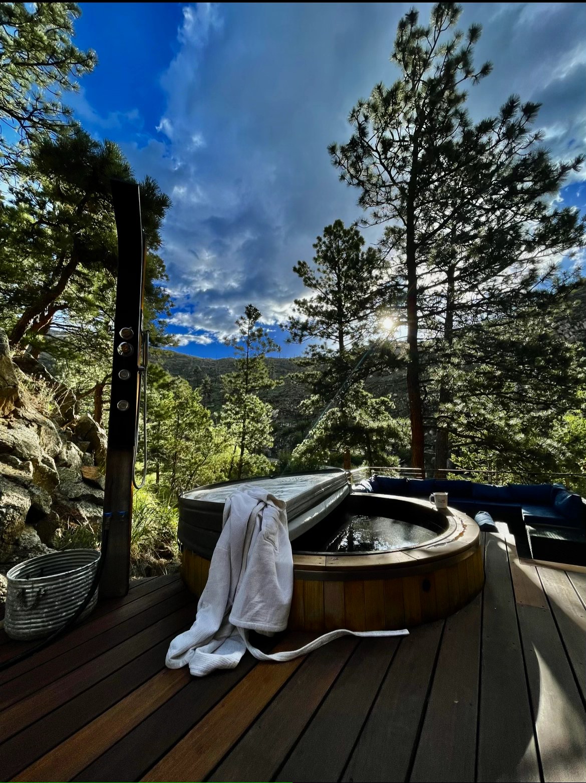 Welcome to the Rusty Skillet Ranch + Spa. Luxury A-Frame spa retreat secluded on 12 private acres, just 15 minutes from Boulder and 40 minutes from Denver. The ultimate retreat to relax and unwind. Features a Japanese Cedar Hot Tub, a Barrel Sauna, breathtaking views, indoor fireplace, outdoor shower overlooking a creek, and luxury indoor–outdoor living. An optional private lower-level suite is available for $250/night and includes three queen futon beds, it sleeps up to 6 additional guests.