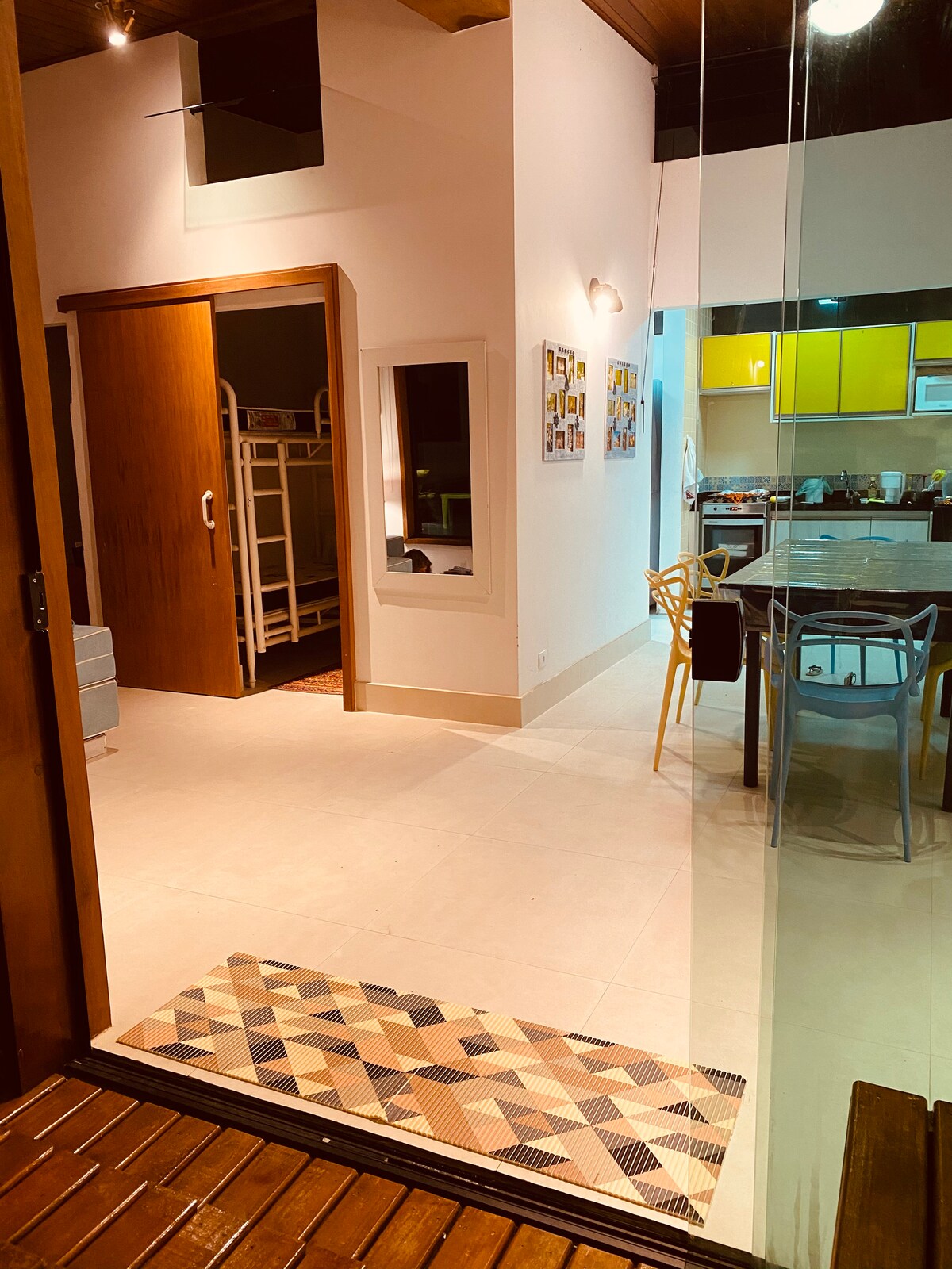 Fique literalmente a 10 passos da praia, durma ouvindo o som do mar e aproveite a praia até tarde sem nenhuma preocupação. Localizado em uma das praias mais exclusivas do Guarujá, em condomínio fechado com apenas 25 casas e segurança 24 horas — ideal para quem busca privacidade e tranquilidade à beira-mar. O acesso à casa é feito por uma escadaria com 246 degraus. Recomendamos trazer poucas bagagens e não indicamos para pessoas com dificuldade de mobilidade.