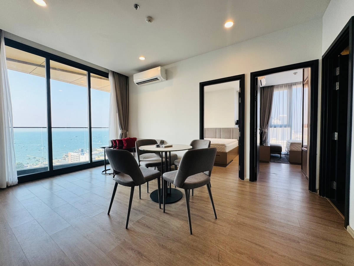 Edge芭堤雅稀有豪华高层正海景大两房公寓芭堤雅湾景,近沙滩+步行街+购物+餐厅 *阳台欣赏烟花节*
