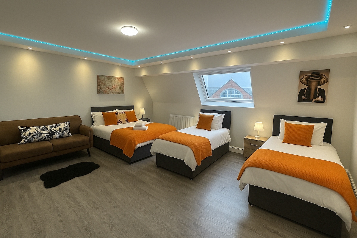 Welcome to our inviting 1-bedroom apartment located in Liverpool. This well-appointed space is perfect for up to 4 guests, featuring 2 single zip lock beds that can be arranged to your preference, and a comfortable sofa bed for extra sleeping space. The apartment offers all the basic amenities you need for a pleasant stay, including a fully equipped kitchen, living area with a flat-screen TV. Whether you're here for a short or longer visit, you'll have everything you need to feel right at home.