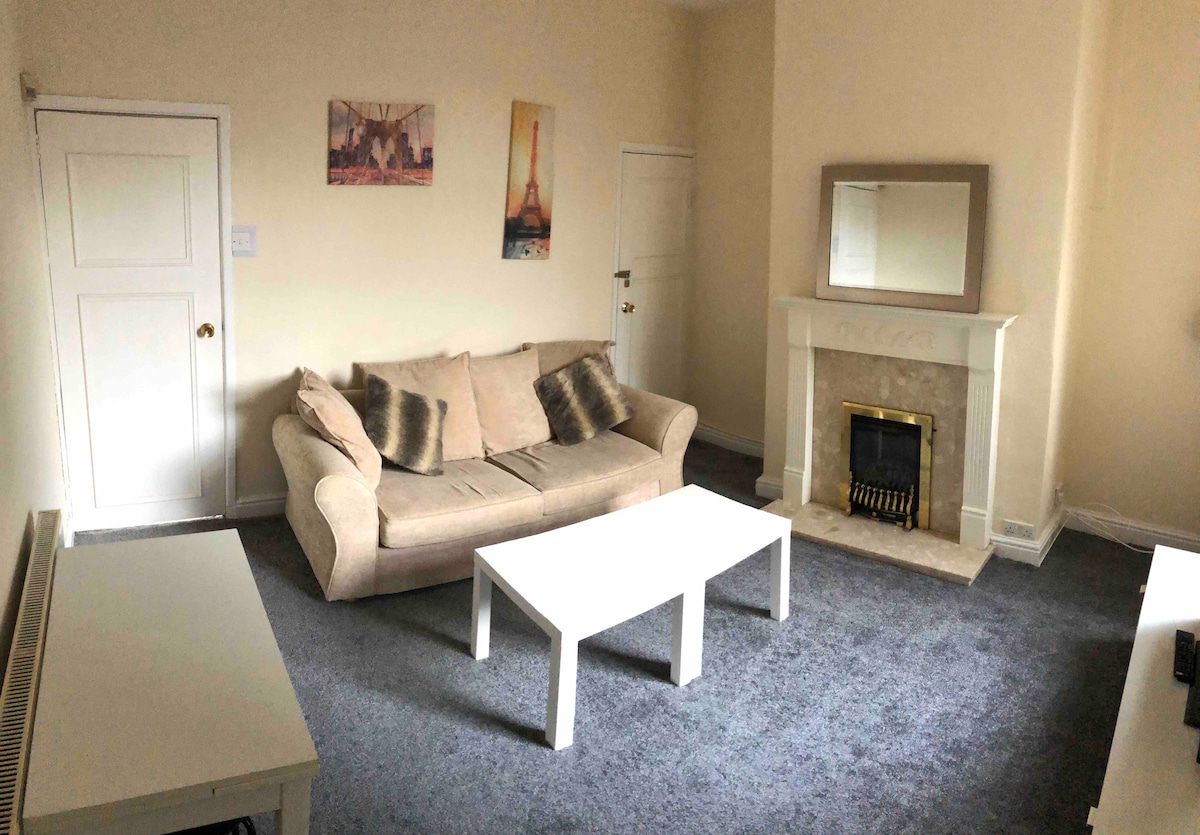 這是一間新翻修的單臥室,一樓公寓,有私人車道和後花園區域。 大樓坐落在Cheadle市中心。非常靠近商店、餐廳、酒吧和公共交通工具。10分鐘即可抵達曼徹斯特機場, 20-25分鐘車程即可抵達曼徹斯特市。 公寓有1間裝潢新鮮的臥室,配有一張舒適的雙人牀。寬敞的開放式客廳/廚房區域有一張沙發牀-適合2位成人入住,但它是一張小雙人牀。