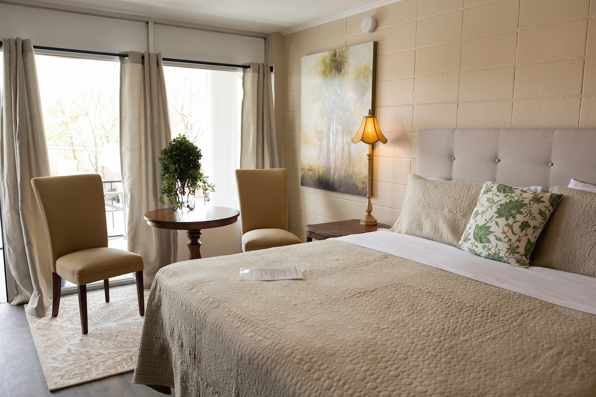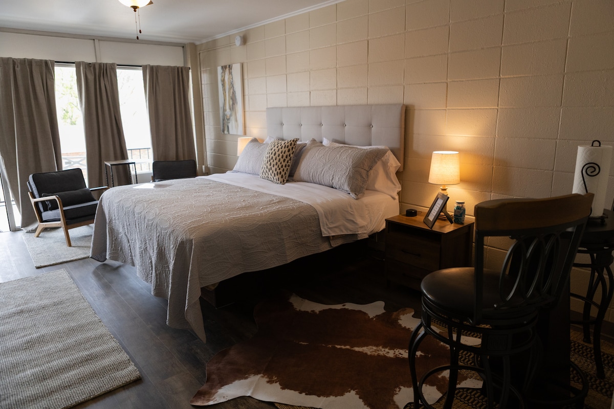 享受溫馨的肯塔基州主題套房,距離猛獁洞國家公園不到6英里,距離諾林湖20分鐘,距離鮑靈格林20英里,位於布朗斯維爾市中心的真正復古汽車旅館。這間新翻修的套房擁有小鎮汽車旅館的懷舊感,但配有幾個現代化的設備和一張加大雙人床墊!如果您與團體一起旅行,Mohawk有更多套房可供預訂,但這間套房有廚房!請注意,此套房位於二樓,沒有電梯。