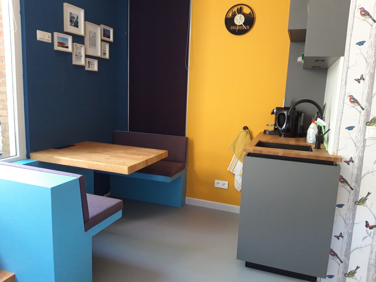 Relax and unwind in this stylish studio near Eindhoven Airport and close to ASML, Máxima MC, the High Tech Campus (HTC), Koningshof Conference Center, and Eindhoven city center. This luxury guest studio with a double bed is a pleasant surprise on a quiet business park on the edge of Veldhoven/Eindhoven. Located in a commercial building with private entrance, private bathroom and kitchen, and free parking. The Strijpsebaan Hertgang bus stop for lines 20 and 403 is 700 m away.