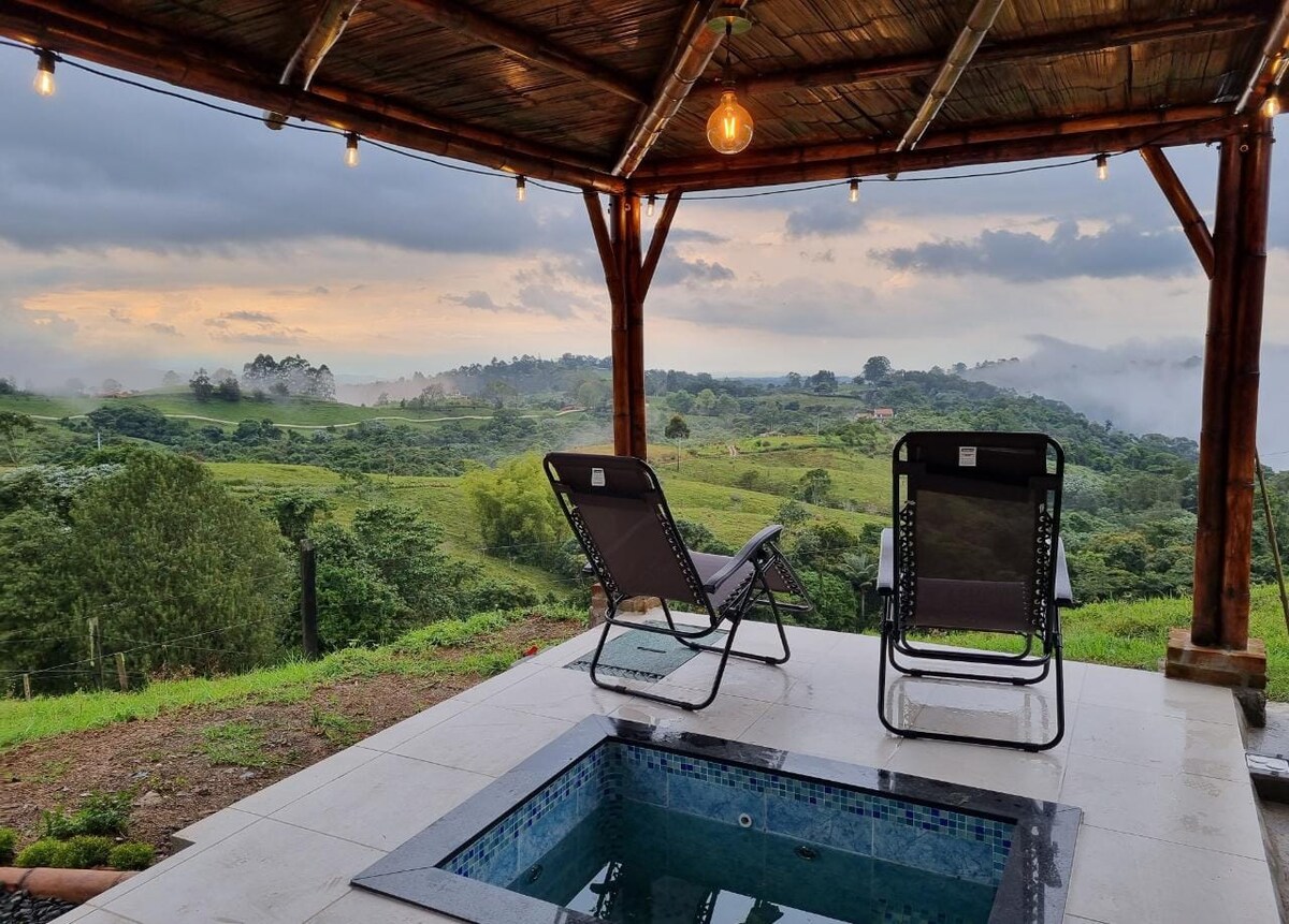 迷人的小木屋和基克拉澤斯石窟式熱水浴缸,地理位置優越,位於咖啡區的中心。 水療和夜燈展示、生態步道、觀鳥、蝴蝶、野生動物、竹海全景、日出和多色日落。 -距離國際機場22分鐘 -距離Expofuturo 20分鐘 - 22分鐘即可抵達Ukumari動物園 -前往Cerritos del Mar Mall需時25分鐘 -距離Filandia/Salento-Valle del Cocora 44-57分鐘 -距離Panaca 55分鐘 -距離Parque del café 1小時