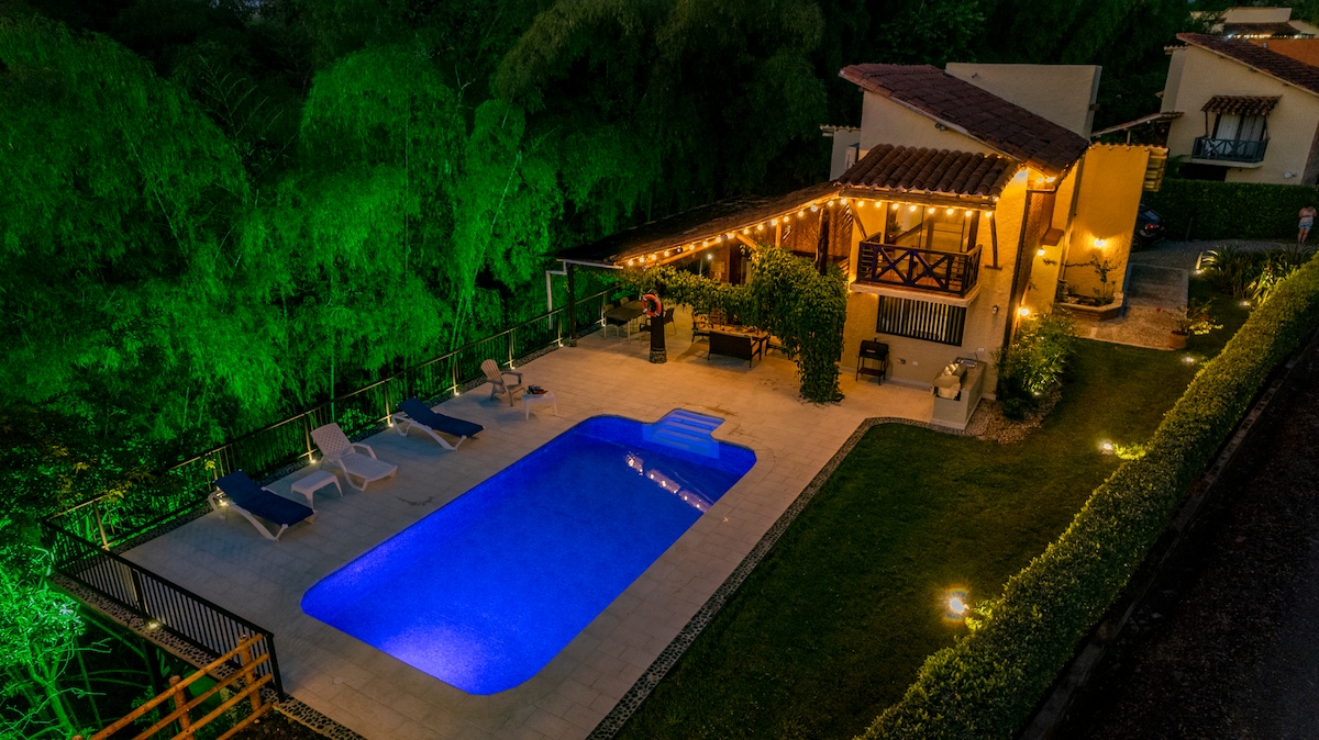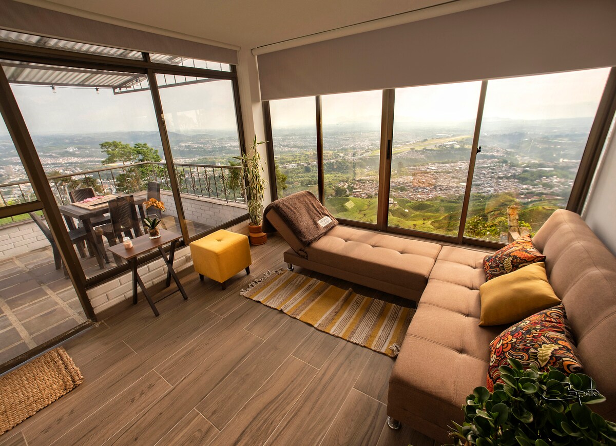 Un hospedaje con la receta perfecta: la comodidad de un alojamiento nuevo y moderno,la belleza del eje cafetero,el aire limpio,la noche estrellada,esta es una experiencia llena de tranquilidad que le recargara de energía mientras disfrutas del jacuzzi con una copa de vino y las luces de la cuidad a sus pies .Todo dentro de un marco de privacidad y excelente atención.