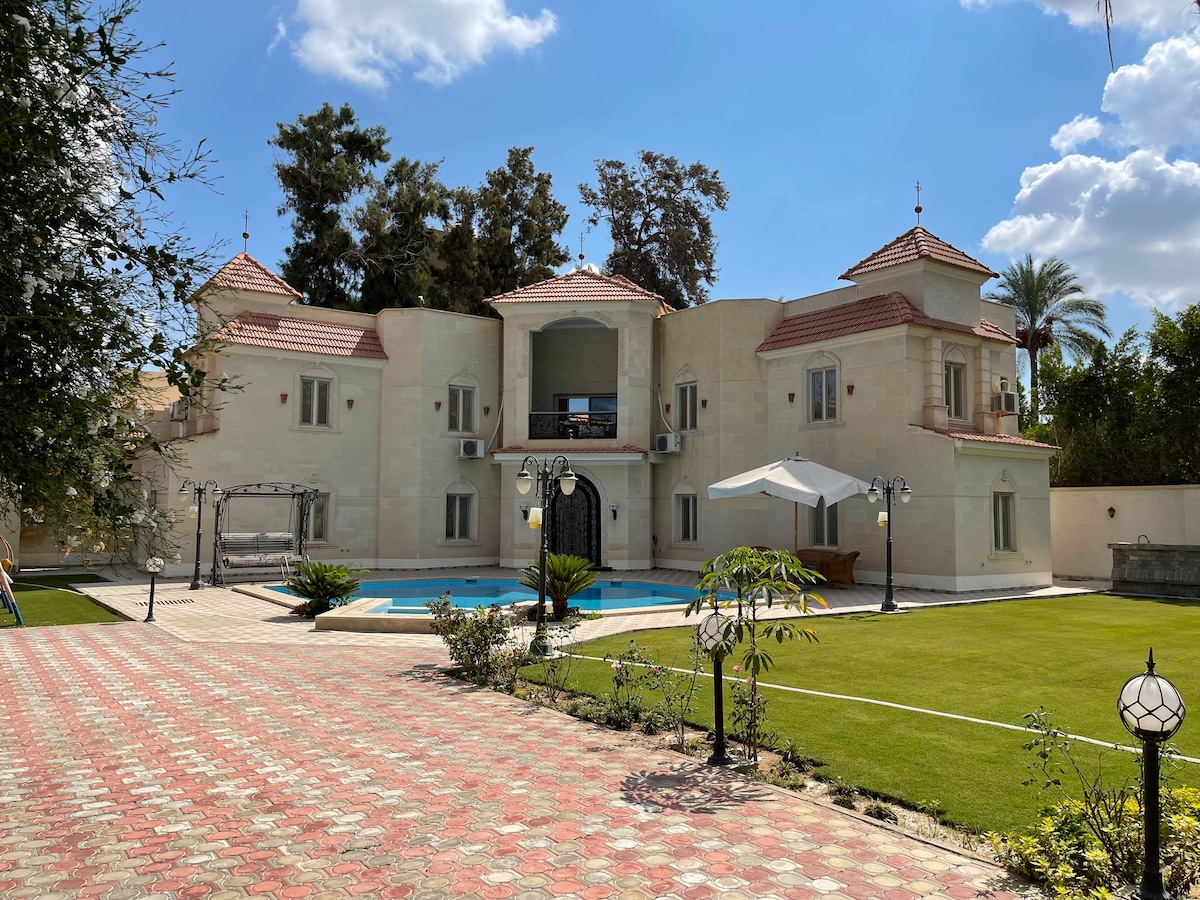 您將獨享整套房源,並且只會與同行房客共用。 美妙而愉快的別墅,配有私人泳池,位於亞歷山德裏亞的Borg Al Arab。 距北部15分鐘車程 別墅位於住宅區( Hawaria )。別墅有5間臥室和4間浴室。住宿提供草坪花園,有樹木。附近有體育活動和外出場所,是與家人或朋友甚至寵物一起在埃及度假的好別墅。