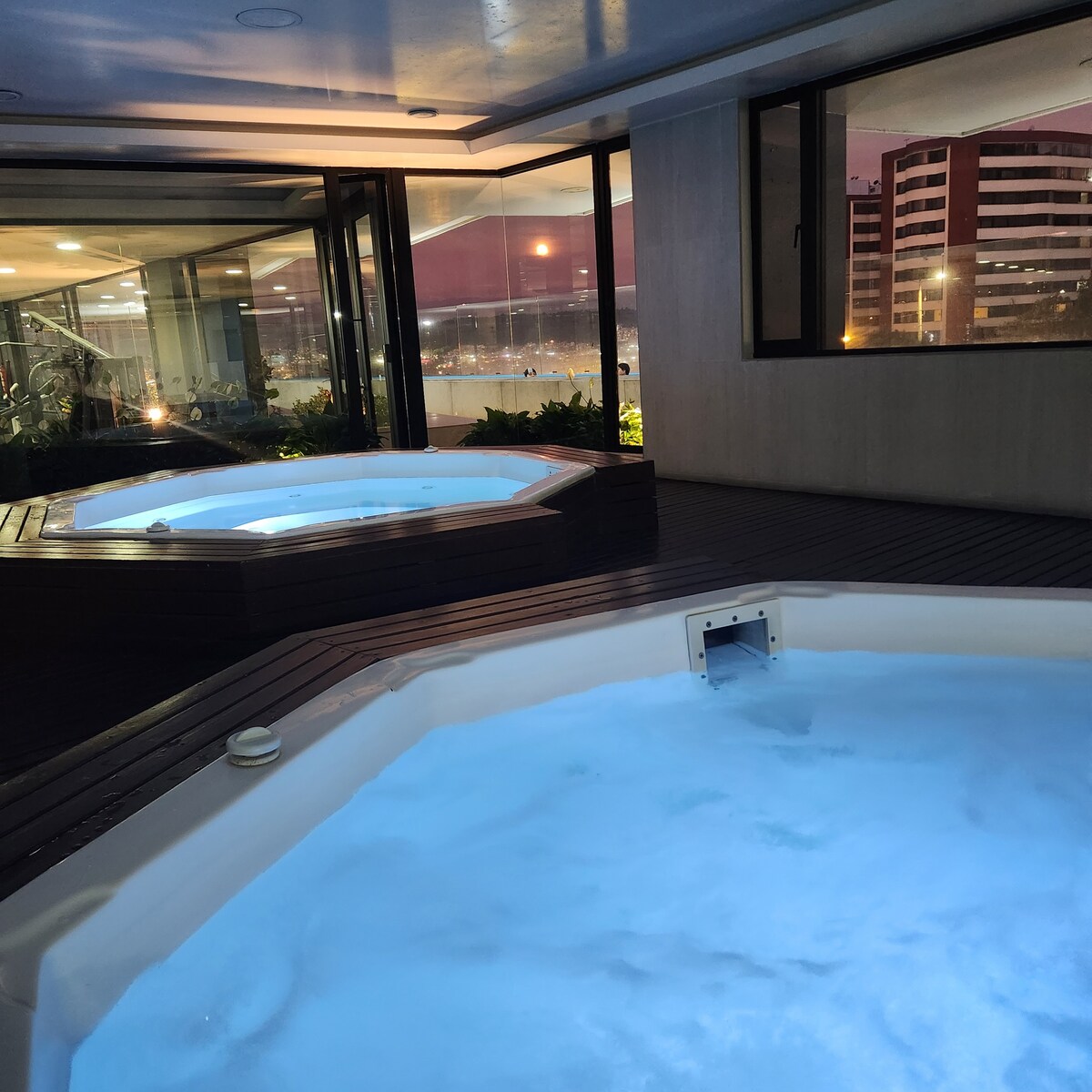Vive una experiencia de lujo en esta exclusiva suite en El Bosque, Quito. Combina lujo, privacidad y estilo en un solo lugar. Cama King con colchón, almohadas y sábanas de lujo, además de 2 TVs gigantes. Disfruta de piscina temperada, sauna, turco e hidromasaje, junto a una impresionante vista 360° de Quito desde la terraza. Áreas para trabajo y descanso. Ubicación privilegiada y segura, cerca de todo. Ideal para escapadas, negocios o estancias largas. Reserva ahora.