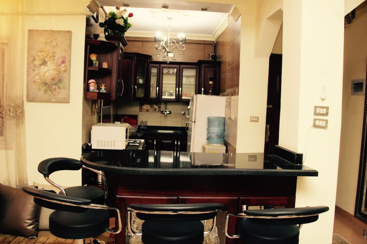 這間2房公寓最近經過重新設計,讓您住得舒適。主要空間有舒適的沙發和扶手椅、餐桌和一個完全準備好的現代廚房,使其成為用餐和放鬆的理想空間。兩間房間和一個洗手間。我最近翻新了公寓,讓它成為我放鬆身心和投入精力的空間。無論您為什麼或在多大程度上在開羅,您都會充分利用您的時間! 最適合感受樂趣的公寓。