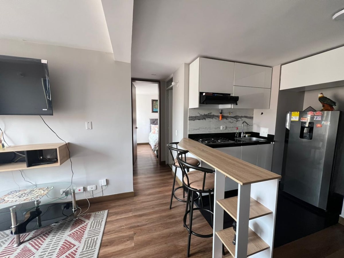 Apartaestudio tipo loft independiente muy tranquilo, en el podrás disfrutar de un Smart tv 43' con tv cable para ver tus mejores programas, películas o eventos deportivos. La comodidad de una cama doble con sábanas, almohadas, cobijas. Cocina completamente equipada para que prepares tus platos y bebidas favoritas. Baño con agua caliente y para tus horas de trabajo cuentas con escritorio y una silla cómoda, todo esto para una linda experiencia como en casa.