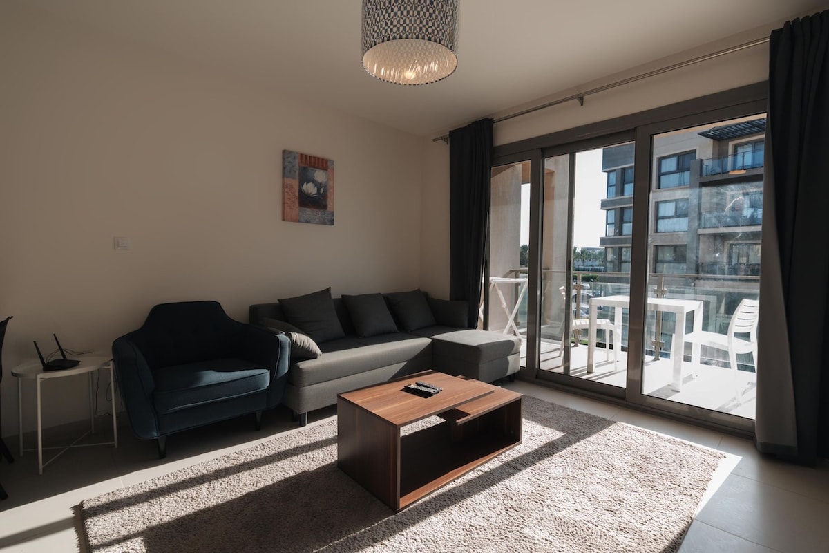 在這間新豪華小木屋放鬆身心,享受您的假期,位於Marina gate 2對面,三樓,有電梯,2間臥室,其中一間是主臥室,2間廁所,家具齊全,設備齊全,有一個可愛的陽台,可欣賞海景,步行僅需3分鐘即可抵達雜貨店。 - 可以前往Uhana Alalamein海灘,每人300埃及鎊。 -可使用波爾圖高爾夫球場泳池區域,每人300埃及鎊。