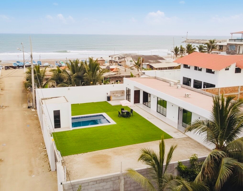 現代家庭旅居,距離Crucita esplanade幾米。 這是我們享受家庭假期的地方,因此設備齊全,讓您感覺像在家一樣。 它有3間臥室、一間帶島的大廚房、一個大冰箱、一間舒適的客廳和一個私人泳池/按摩浴缸。 非常適合在舒適安全的環境中放鬆身心、享受大海和分享時光。 房子有2個室外攝影機,讓您安心,並有兩輛車的空間。