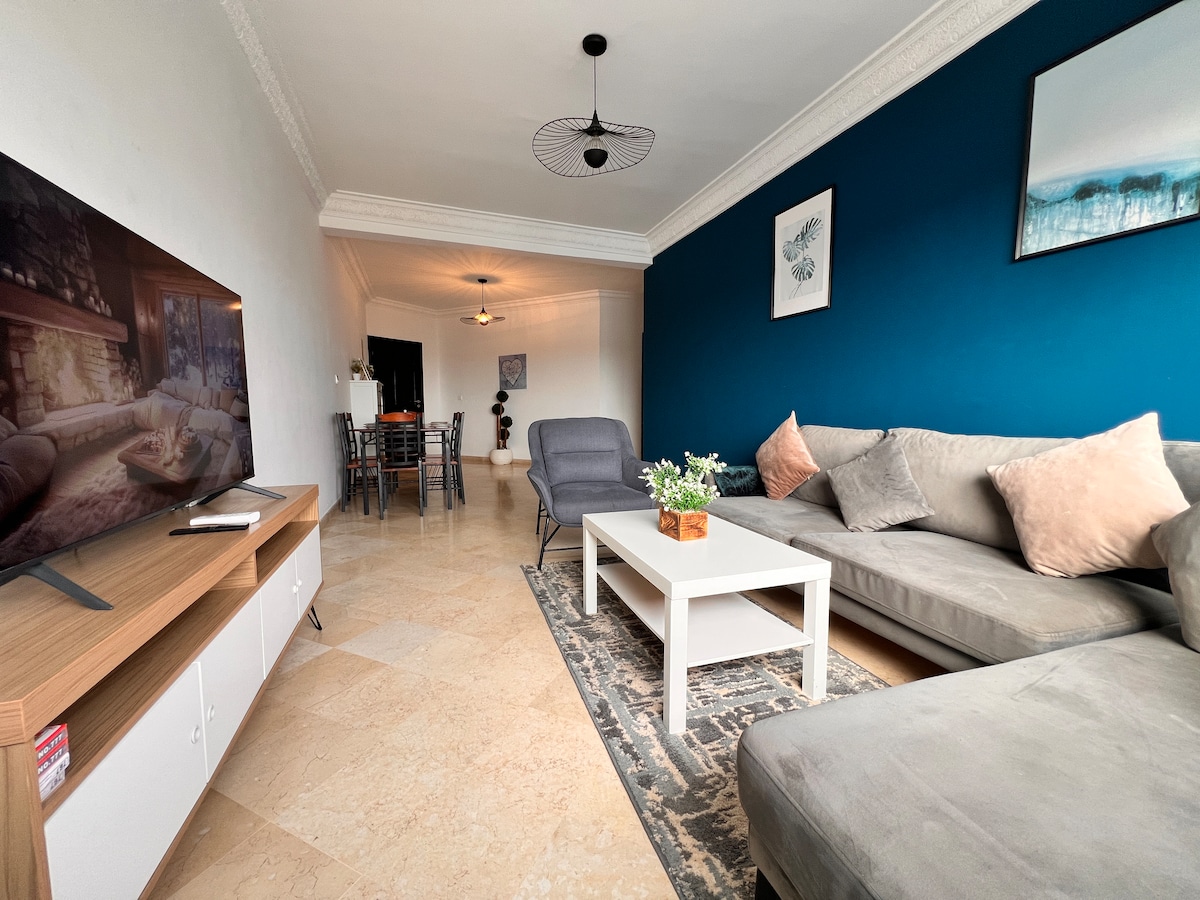裝潢現代化,從地板到天花板和家具,一切都是全新的。廚房設備齊全且現代化。 高速WiFi。位於最近的住宅和商業區域,這個街區真的很安靜。步行5分鐘即可抵達Marjane購物中心( Wallmart/Asda類型的大型食品分銷和服裝店)。 步行約20分鐘即可抵達海灘的西海岸。