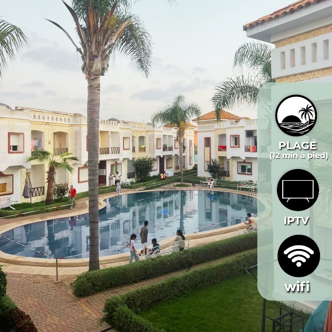 明亮的Hacienda公寓-距離海邊300米 ✨ 在El Jadida的Club de Vacances Hacienda享受家庭住宿,距離海灘僅300米! 🛏️ 2間舒適的睡房。 🛋️ 客廳配有電視和用餐區。 🍳 設備齊全的廚房。 🚿 現代化的衛浴。 🏊♂️ 2個有專人看管的泳池。 🅿️ 免費停車 🛎️ 24小時全天候保安服務。 安靜的區域,靠近商店。 注意:沒有Wi-Fi。 非常適合家庭度假! 🌊